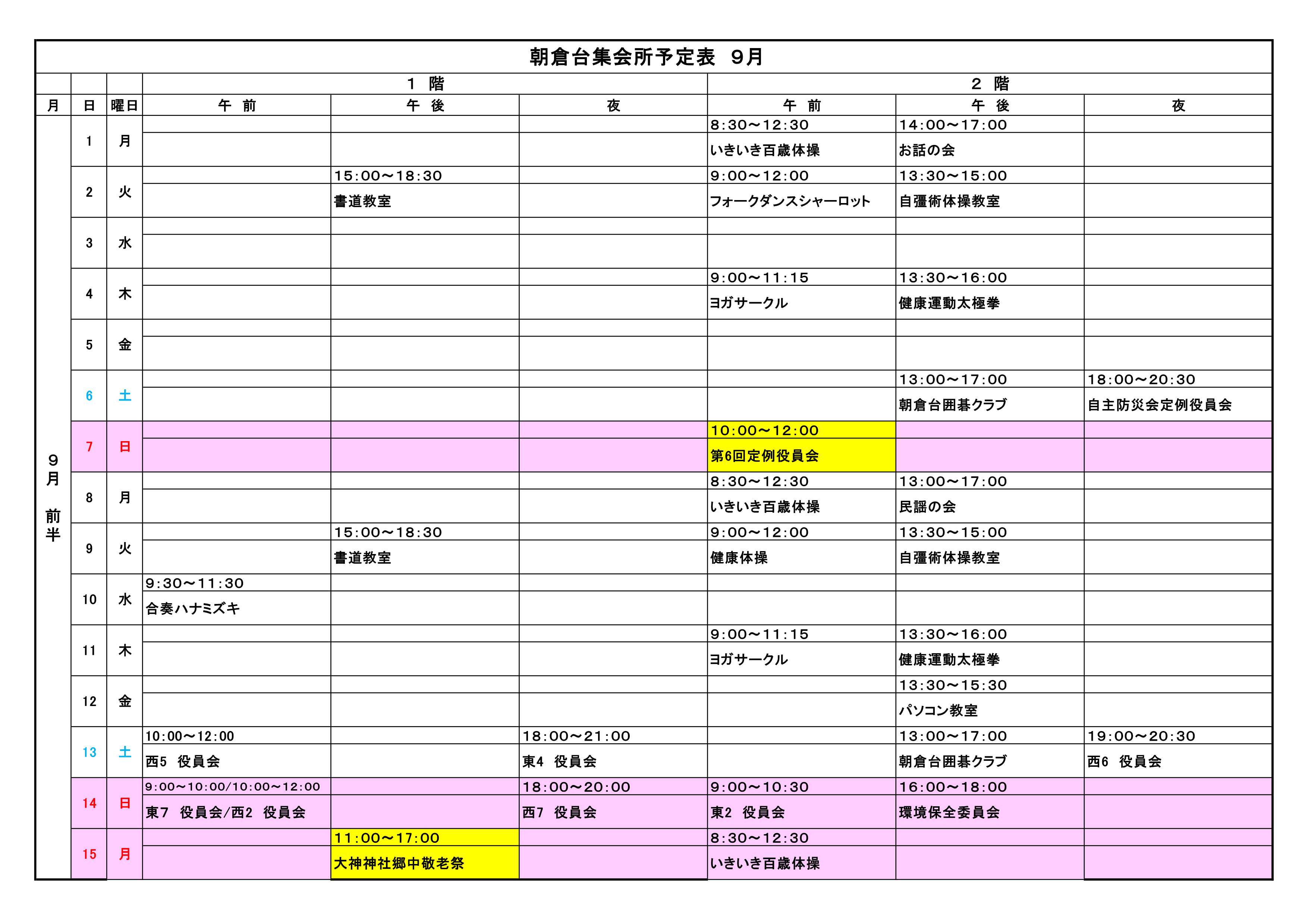 月別集会所利用予定