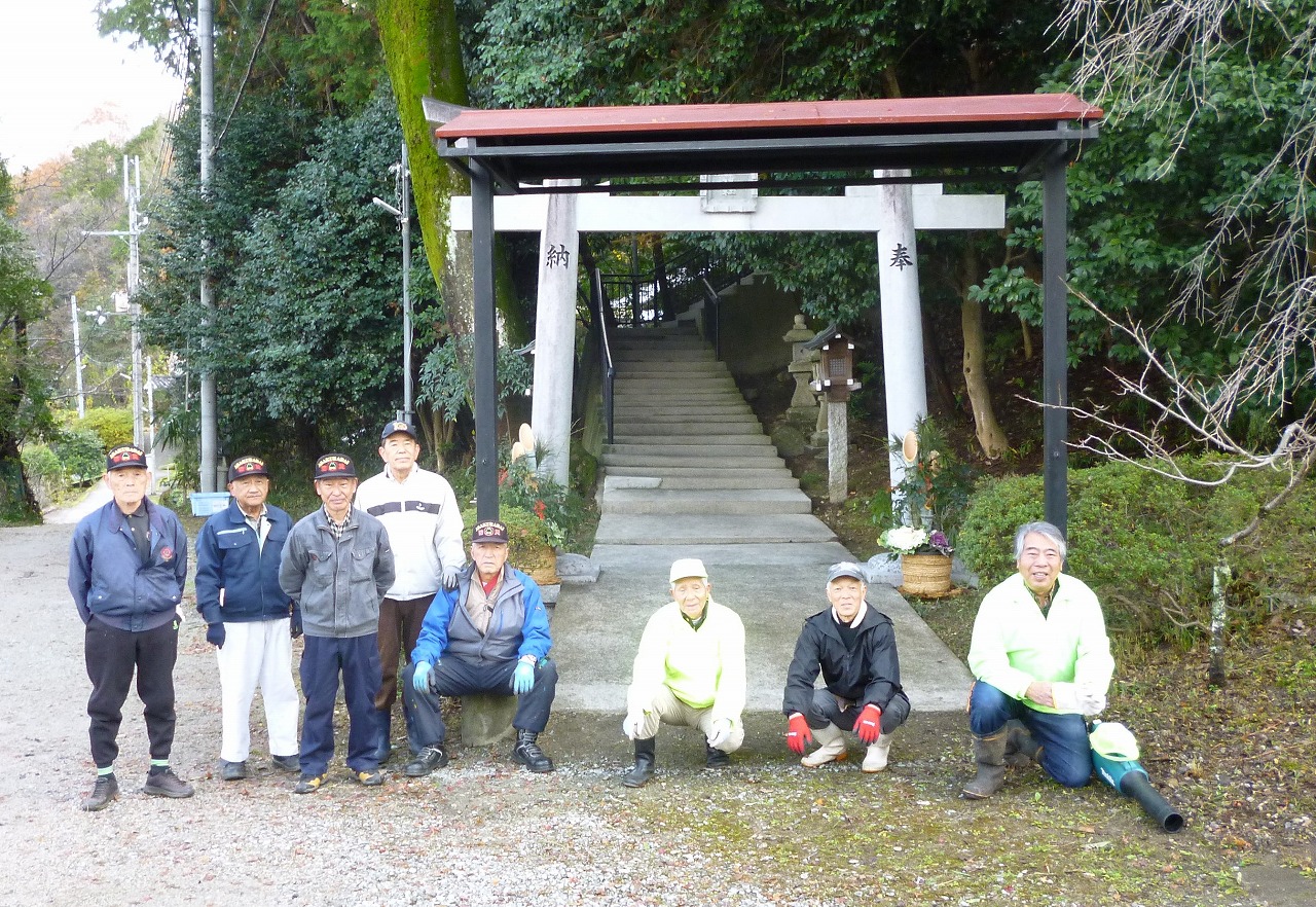 12月21日(日) 朝倉台ボランティア有志で団地下の素盞嗚神社境内の落ち葉枯れ枝等の清掃を実施しました 今年も年の瀬が迫りましたので1年の感謝と新年を迎える準備として、朝倉台北側近鉄線路横にあります素盞嗚神社境内の落ち葉清掃と門松造りを朝倉台ボランティア有志で行いました。 これで新年をお迎えする準備完了です。神様もお喜びのことと思います。 皆様お疲れ様でした。(菅原) トップページに戻る
