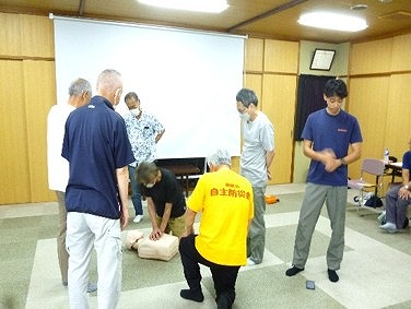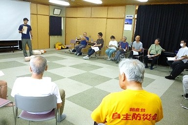 7月13日(日)朝倉台自主防災会主催の第一回「救命講習会」が集会所で開催されました。 コロナ禍の年から密を避けるため、15名のワクで2回に分けて実施されることになり、今回は、第一回目の「防犯防火委員会」会員15名が対象でした。 皆さん、最初はやや緊張気味でしたが、段々と盛り上がり、結構、楽しい雰囲気の中、3時間コースを修了しました。 最後に、松尾委員長から受講者を代表して、桜井消防署救命士の方2名様は夜勤明けにも拘わらず、朝倉台のためにご協力下さいまして誠にありがとうございましたと御礼の挨拶がありました。(坂口) トップページに戻る
