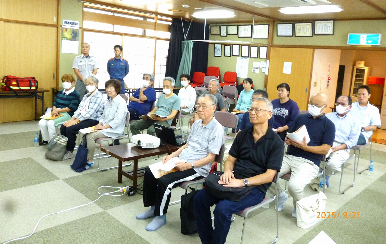 9月21日(日)朝倉台自主防災会主催の、第二回「救命講習会」が自治会「人権福祉対策委員会」会員対象に開催されました。 第二回目の今回は、人権福祉対策委員会員の皆さん15名が受講され、3時間コースを終了しました。 阪神淡路大震災後の平成9年の朝倉台自主防災会が設立しましたが、その年から救命講習会は毎年開催され、今年、自主防設立29年目になることから、延べ数で、約870名もの多くの住民の皆さんが受講されたことになります。凄い数字です。 終了後、人権福祉対策会の中村委員長から消防署救命士の皆さんに心からの御礼の挨拶がありました、(坂口) トップページに戻る