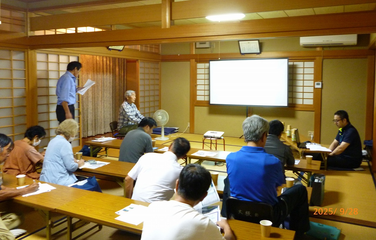 9月28日(日)朝倉台自主防災会副会長が明日香村大根田大字の防災研修会に出講しました。 全国各地で線状降水帯等の自然災害が数多く発生しています。 また、2023年には明日香村「稲渕」で大雨に夜土砂災害被害に遭ったことから、過去の災害を学び、我がこととしてどう備えるか? を講義して皆さんで考えました。 トップページに戻る