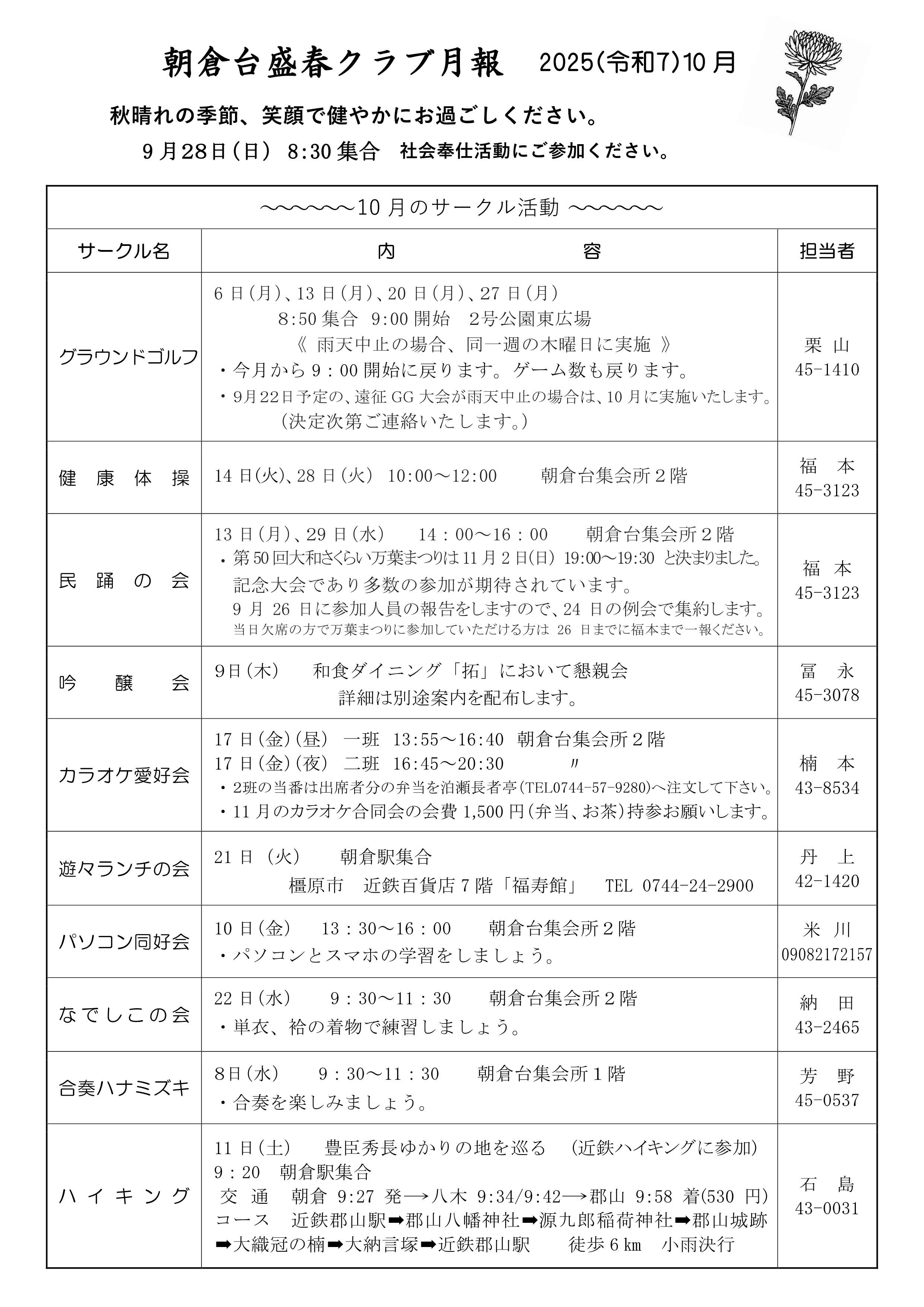 8月4日(月) 盛春クラブ8月号 (活動予定)