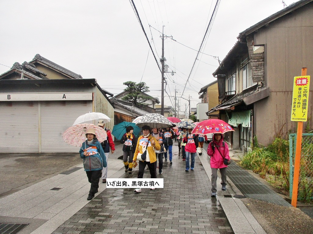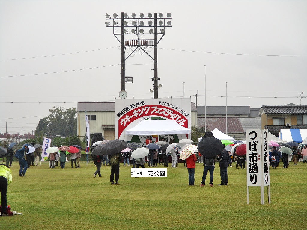 あいにくの雨模様の天候でしたが、フェスティバルは予定通り開催され、私たち参加者19名(男性7,女性12)は雨にもめげず、全員無事完歩しました。
