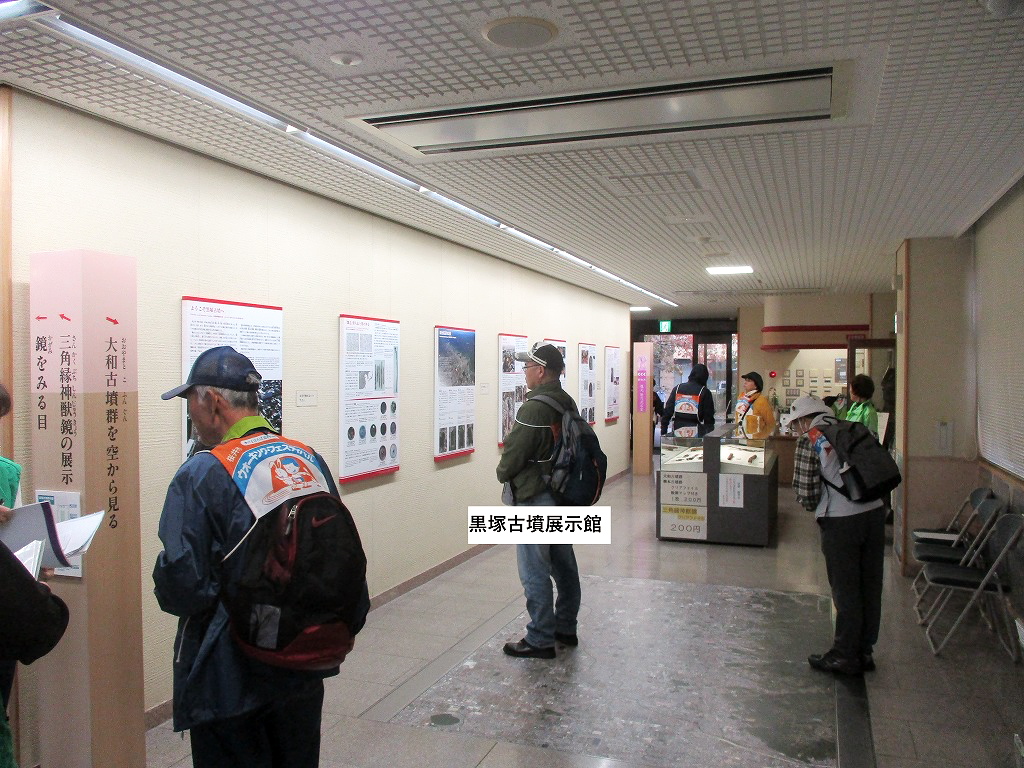 〇黒塚古墳全長約130mの前方後円墳。大和古墳群にある。平成9(1997)年8月から発掘調査が開始され、後円部中央の竪穴式石室から、1面の画文帯神獣鏡や33面の三角縁神獣鏡などの副葬品が完全な形で出土した。一つの古墳からの三角縁神獣鏡の出土数としては全国最多である。三角縁神獣鏡は卑弥呼が魏から贈られたとされる「卑弥呼の鏡」と呼ばれるもので、大和の中心部で見つかったのは初めてであるだけに、邪馬台国論争を左右する重要な手がかりになるものとして、注目を集めている。築造は3世紀後半から4世紀前半頃で大和政権の有力人物の墓と推測されている。