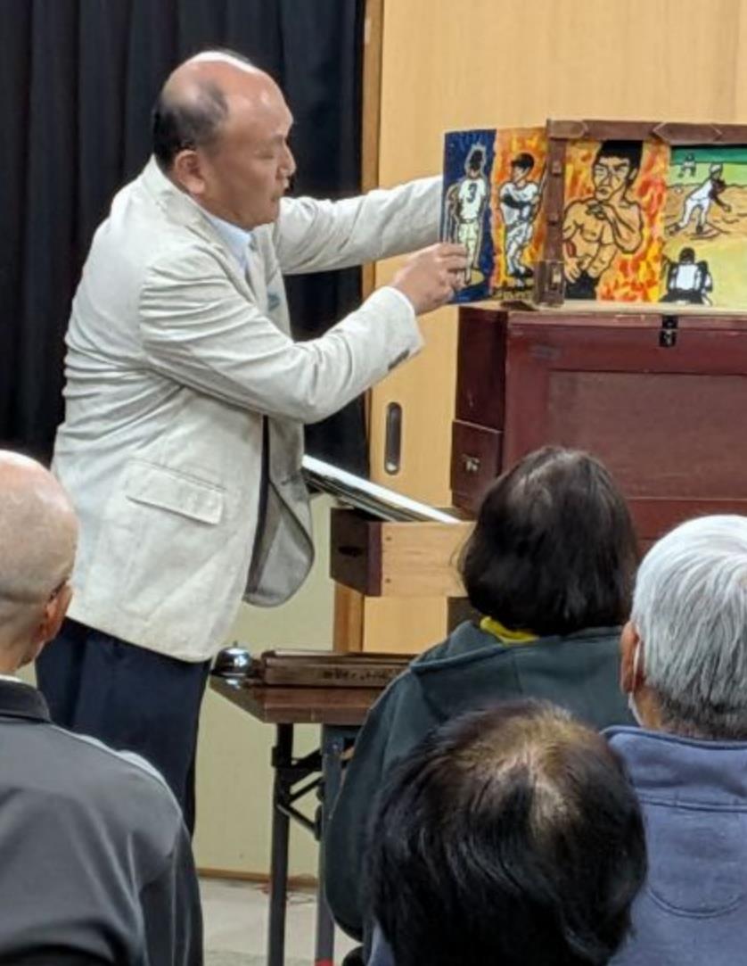 紙芝居の畑中様は元小学校の先生で授業に手作り紙芝居を取り入れた有名な紙芝居先生です